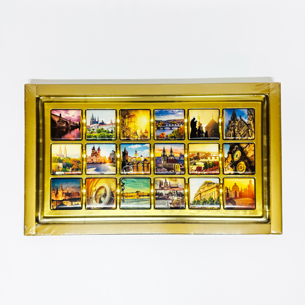 Die Packung enthält 18 Schokoladenstücke (Neapolitaner) aus dunkler Schokolade.